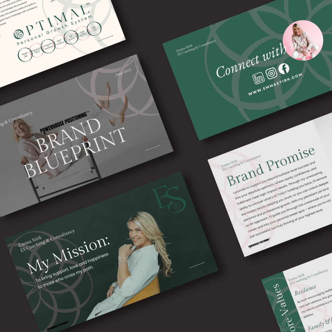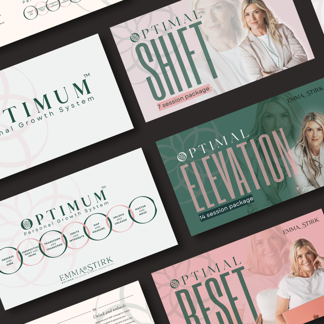 From there, I engineered her entire brand ecosystem, starting with the creation of her new professional identity: Emma Stirk, The Optimal Personal Growth Specialist. This title positioned her with precision, signalling immediate credibility and distinction in a crowded market.The full brand build included: